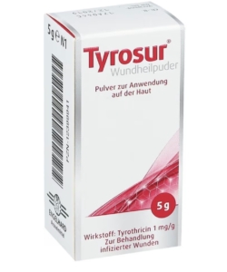 Das Tyrosur Wundheilpuder verwenden wir bei kleineren, oberflächlichen Wunden, die leicht nässen oder erste Anzeichen einer bakteriellen Belastung zeigen.